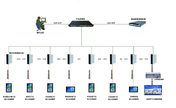 數(shù)字公告系統(tǒng)是構(gòu)架在網(wǎng)絡(luò)環(huán)境的新一代多媒體信息發(fā)布系統(tǒng),采用TCP/IP傳輸協(xié)議,由中心控制系統(tǒng)和顯示終端結(jié)合工作。系統(tǒng)軟件(Remote MultiMedia)構(gòu)建了一個(gè)通過集中管理實(shí)時(shí)多路播出的具有統(tǒng)一調(diào)度與靈活分組分區(qū)的多媒體信息發(fā)布平臺(tái),操作人員通過用戶賬號(hào)校驗(yàn)登錄到控制服務(wù)端進(jìn)行節(jié)目內(nèi)容采集、編排、發(fā)布和管理等功能操作,節(jié)目通過網(wǎng)絡(luò)傳輸?shù)礁黠@控終端進(jìn)行本地存儲(chǔ)及信息實(shí)時(shí)播放。數(shù)字公告系統(tǒng)一般在入口大廳、會(huì)議室門口、電梯廳、餐廳等各處放置LCD、PDP、LED等顯示屏,可以播放緊急通知、宣傳廣告、會(huì)議議程、重要新聞等信息,而且支持不同的地點(diǎn)展示不同的信息,提供了便捷的內(nèi)部信息發(fā)布、智能的會(huì)議導(dǎo)引、交互式的宣傳展示。