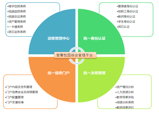 信息化管理平臺對各子系統(tǒng)資源的整合、優(yōu)化、分析并對校園組織和業(yè)務(wù)流程進(jìn)行再造,推進(jìn)校園制度創(chuàng)新、管理創(chuàng)新和服務(wù)創(chuàng)新,實(shí)現(xiàn)教育管理的信息化、決策的科學(xué)化、管理的規(guī)范化。