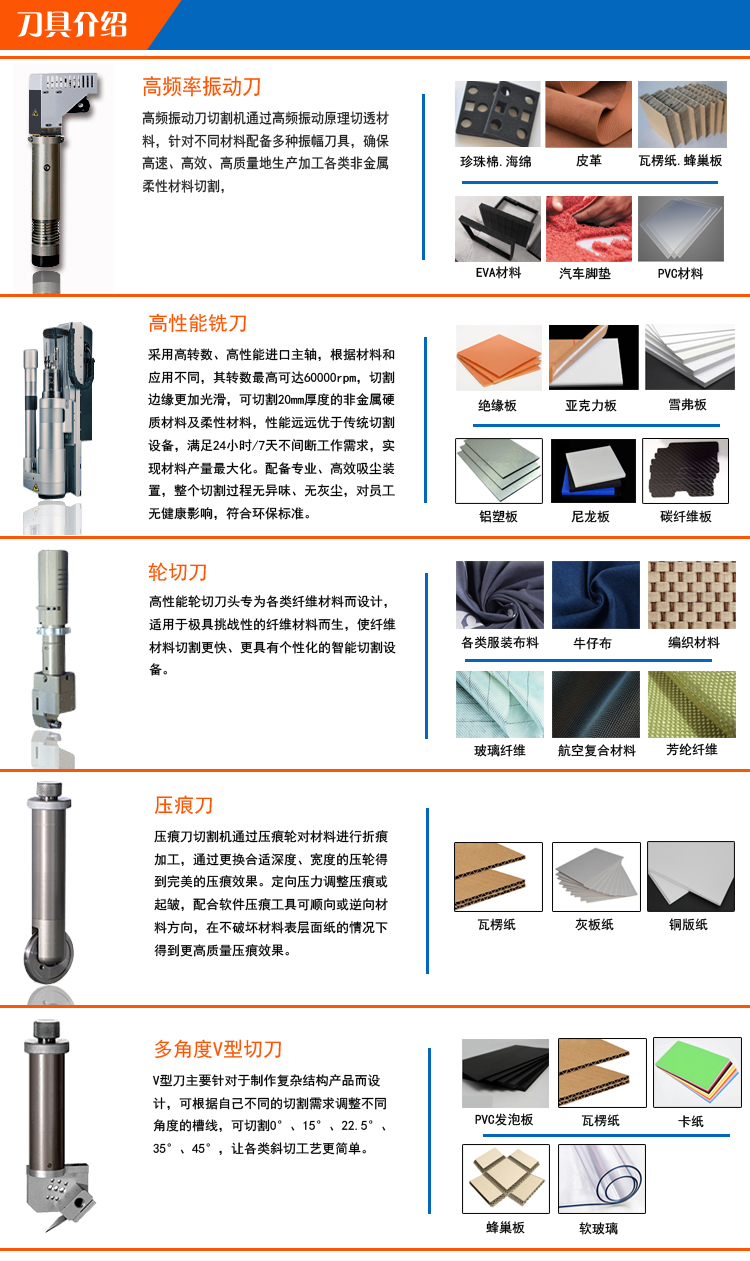 • 適用行業(yè):珍珠棉、EVA、海綿、KT板、不干膠、蜂巢板、瓦楞紙材料的切割等