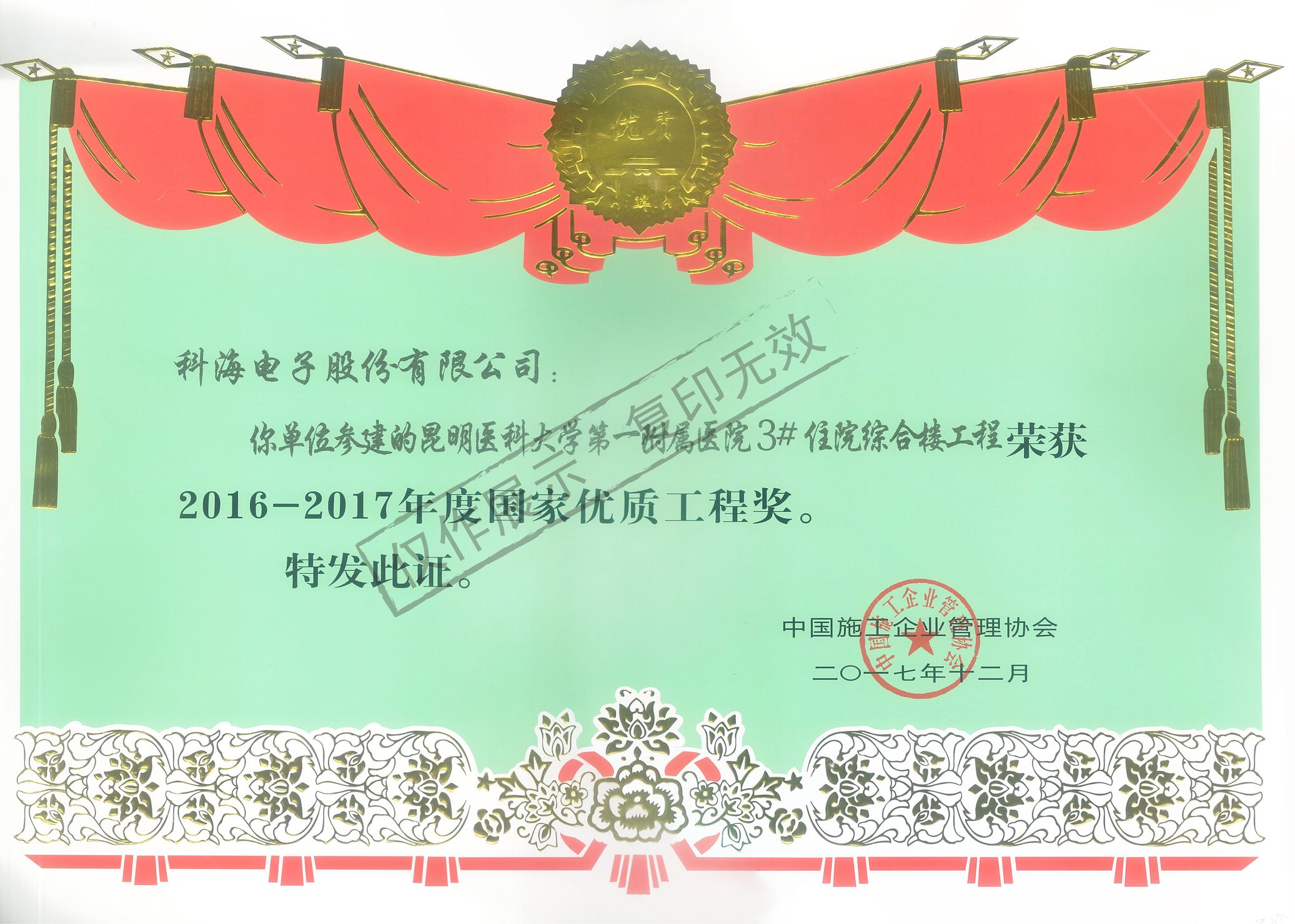 昆明醫(yī)科大學(xué)第一附屬醫(yī)院優(yōu)質(zhì)工程獎(jiǎng)